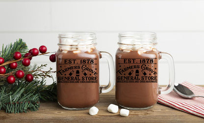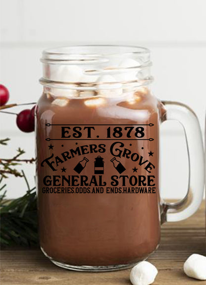 The Farmers Grove General Store logo, engraved with "Est. 1878," adds an authentic, rustic feel to these mason jars, perfect for anyone who loves antique or farmhouse-style decor.