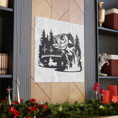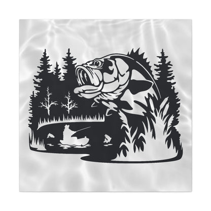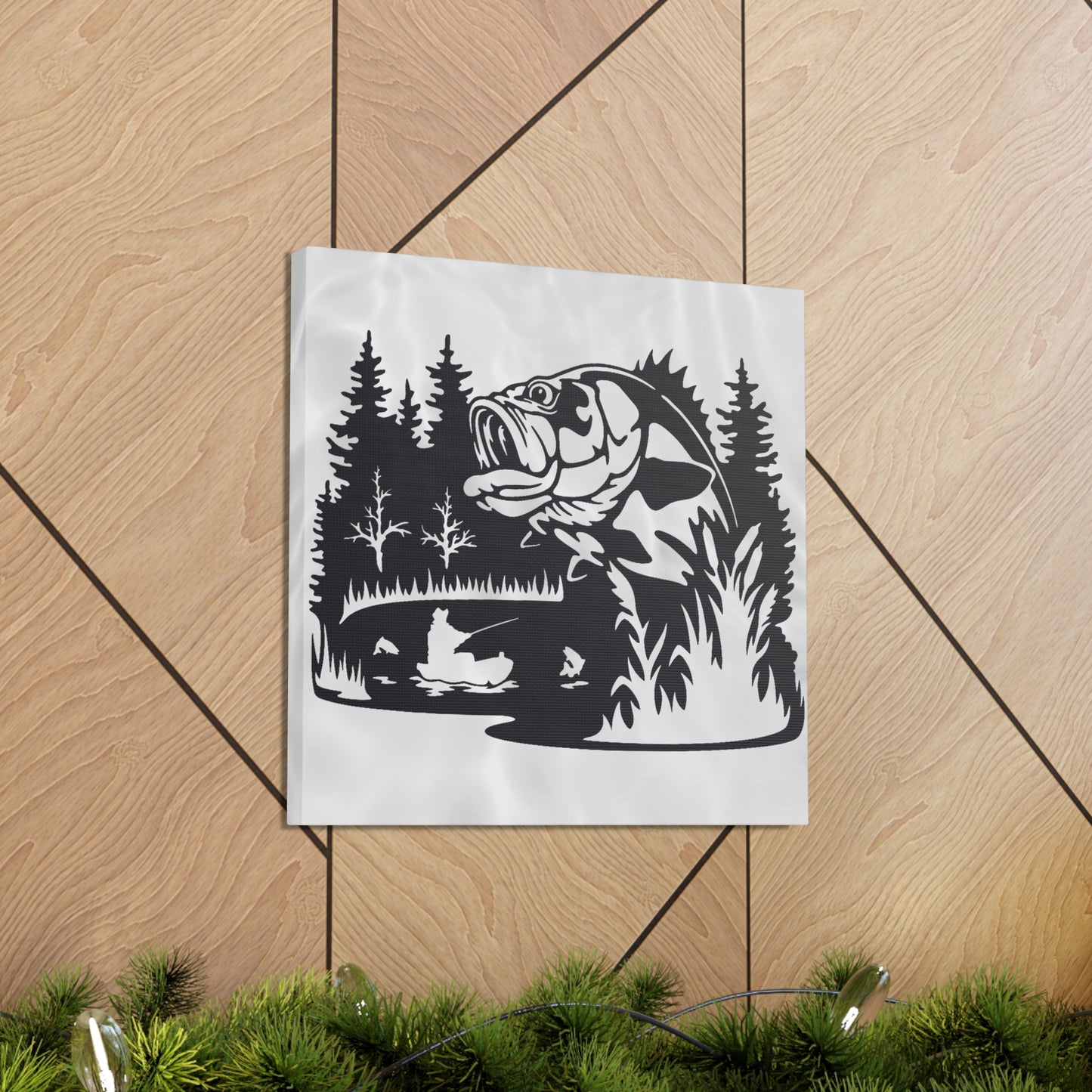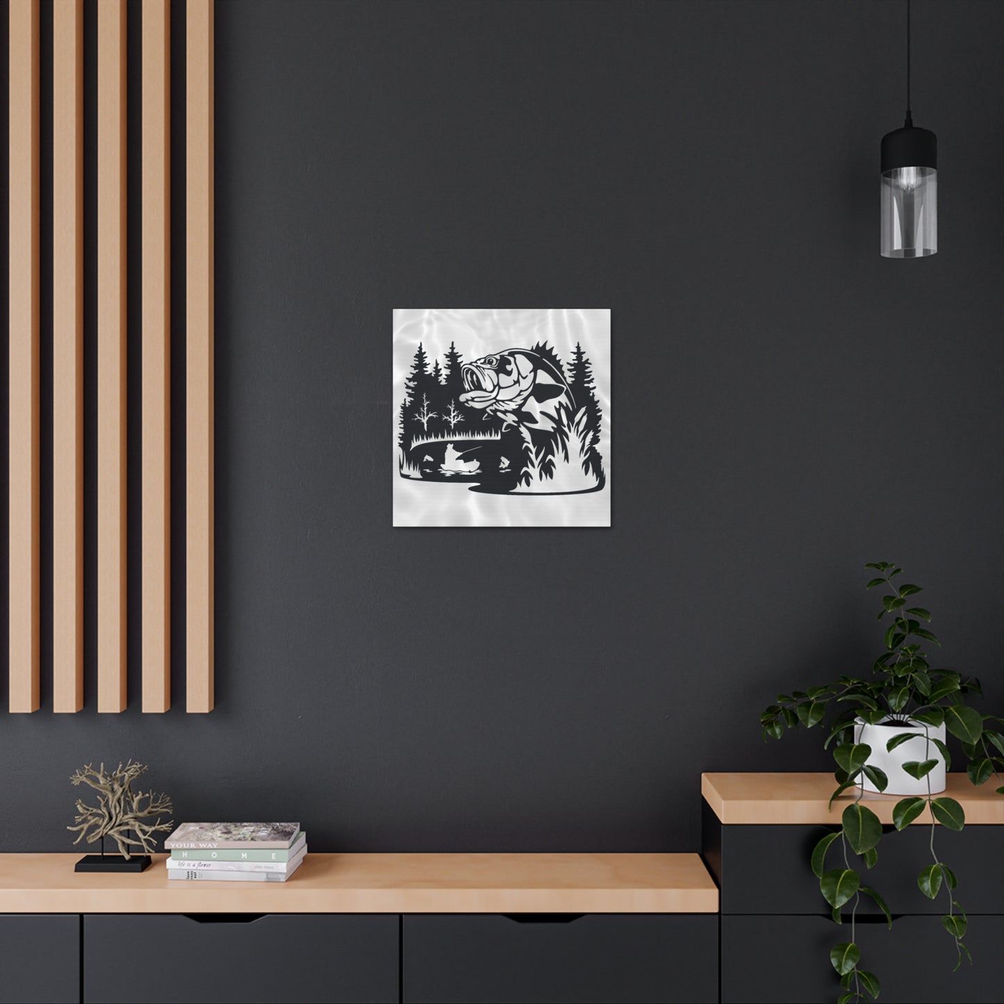 This fishing wall art brings the serenity of a peaceful lake scene right into your home or office. Featuring a black silhouette design of a fish jumping out of the water, a man fishing in a boat, and surrounding nature like trees and cattails, this fish canvas captures the beauty and excitement of a fishing trip. Perfect for any fishing enthusiast or lover of the outdoors, this art print is a stunning addition to your home decor.
