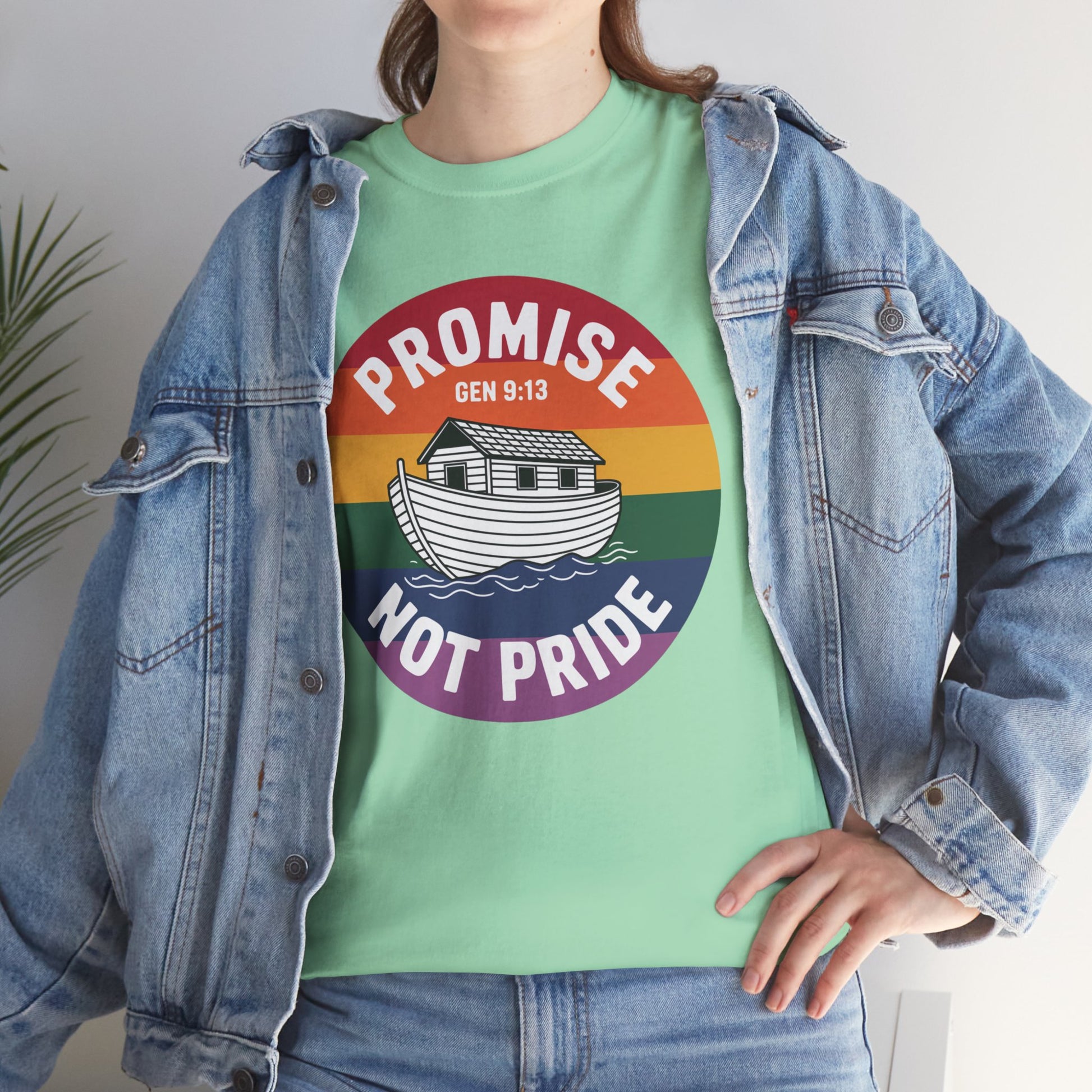 With Noah’s Ark in the center and the words “Promise Not Pride” wrapped around it, this tee reminds the world of God’s mercy, not man’s agenda. If you're looking to wear your faith unapologetically, this shirt does the talking for you.